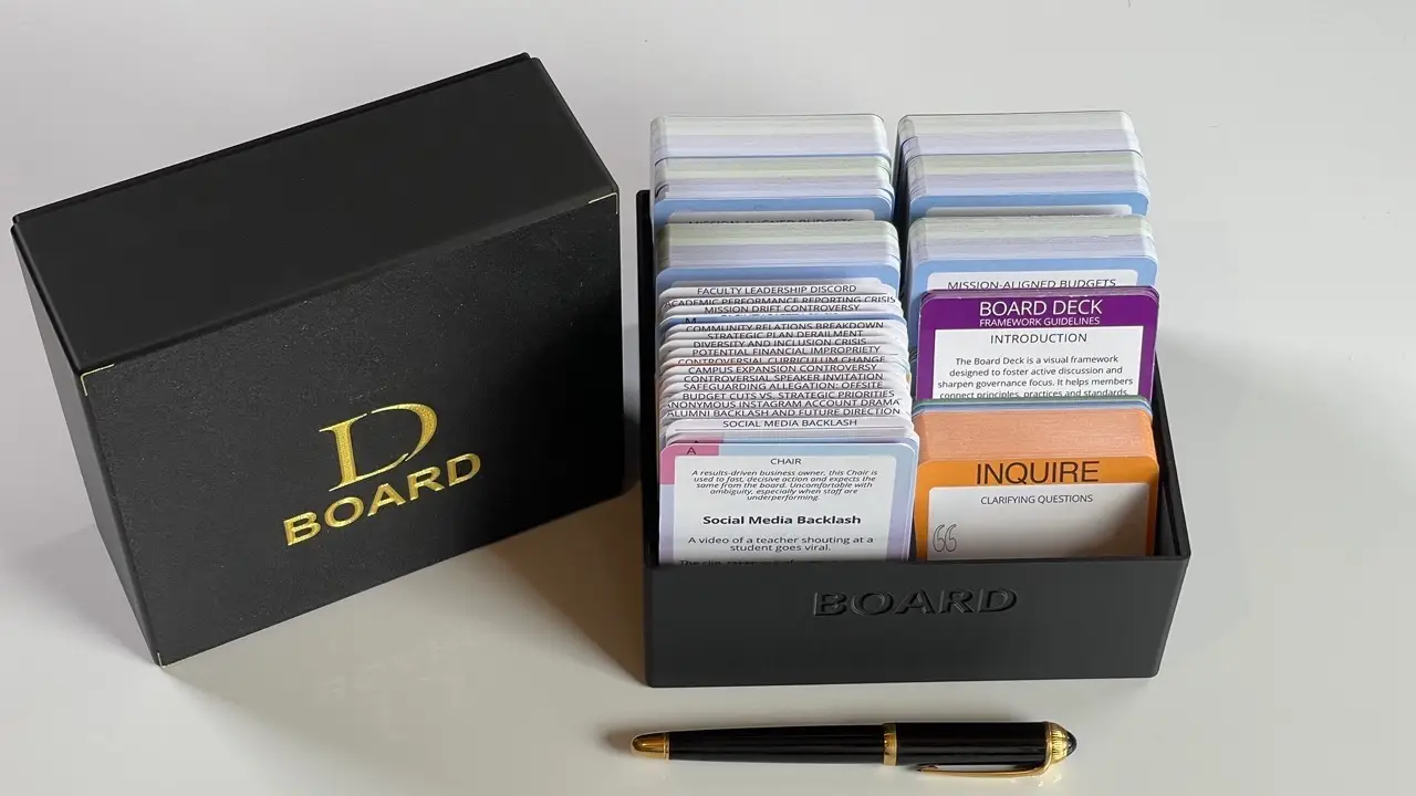 Boards hold a school’s most strategic responsibility – balancing oversight, vision, and accountability. Yet governance is often abstract, leaving trustees uncertain about roles, responsibilities, and impact. The Board Deck turns governance into a structured, practical conversation.